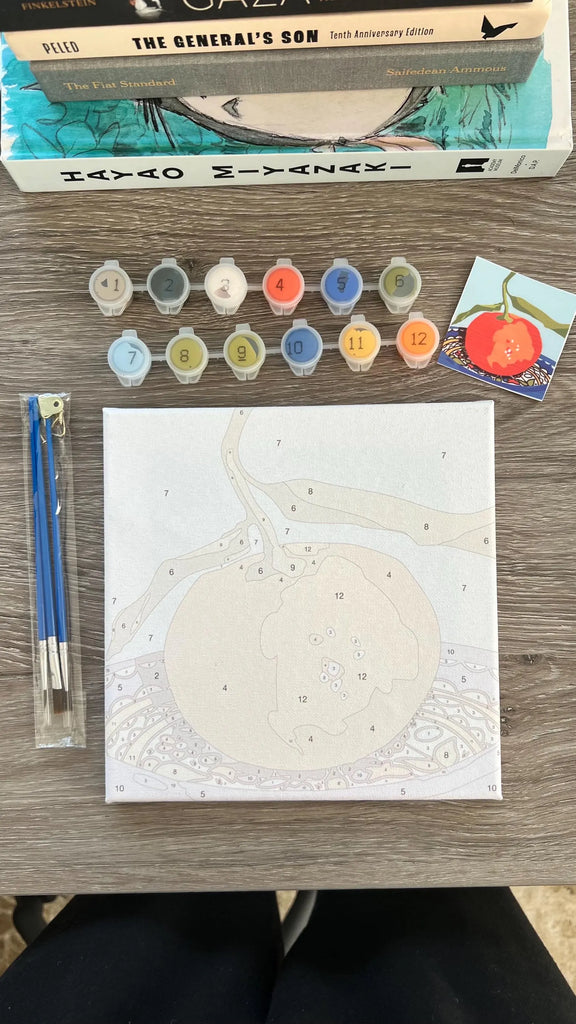 Celebrate the beauty of Palestinian heritage with this paint-by-number kit! This 8x8-inch framed canvas features a stunning Palestinian orange resting in a traditional ceramic bowl, symbolizing resilience, culture, and history.